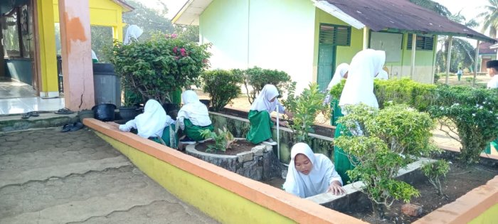 Selain membersihkan sampah di sekitar taman madrasah, siswa juga aktif merawat lingkungan kelas masing-masing. Mereka menyiram bunga di taman madrasah, merapikan tanaman, dan membersihkan rumput serta selokan. Hal ini dilakukan agar lingkungan madrasah tetap hijau, segar, dan rapi setiap hari. Siswa laki-laki juga terlihat bekerja sama mengumpulkan sampah di sekitar taman, menunjukkan kepedulian dan tanggung jawab terhadap kebersihan lingkungan. Kegiatan menjaga kebersihan ini tidak hanya bertujuan menciptakan lingkungan yang sehat, tetapi juga meningkatkan konsentrasi siswa dalam mengerjakan soal ujian . Lingkungan yang bersih dapat mengurangi risiko penyakit dan menumbuhkan sikap positif seperti tanggung jawab, kedisiplinan, serta kepedulian terhadap lingkungan. Selain itu, kegiatan gotong royong ini mempererat kebersamaan antar siswa dan guru di MIN 1 Tebo.