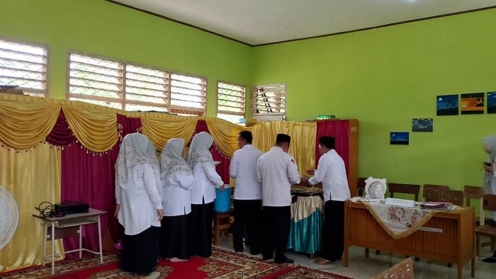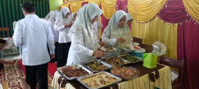 Pada Selasa, 2 Desember 2025, Madrasah Ibtidaiyah Negeri (MIN) 1 Tebo melaksanakan kegiatan Penilaian Kinerja Kepala Madrasah (PKKM) yang berlangsung langsung di lingkungan madrasah. Dalam rangkaian kegiatan tersebut, seluruh dewan guru bersama tim penilai PKKM, yaitu Bapak Drs. Ahmad Makin, M.Pd.I dan Bapak Amirudin, S.Ag., M.Pd.I, mengadakan makan siang bersama pada pukul 12.00 WIB, bertepatan dengan waktu istirahat. Kegiatan makan bersama ini diikuti oleh seluruh dewan guru dan tim penilai yang langsung menuju ruang makan yang telah disiapkan. Makanan yang disajikan merupakan hasil bawaan masing-masing guru dari rumah, seperti nasi, lauk, dan sayur, sehingga menambah nuansa kebersamaan. Menu yang dihidangkan pun beragam, mulai dari masakan bercita rasa pedas hingga manis, yang dinikmati bersama-sama di lingkungan madrasah.