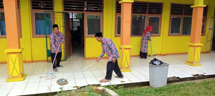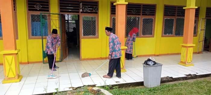 Pada Rabu, 3 Desember 2025, keluarga besar Madrasah Ibtidaiyah Negeri (MIN) 1 Tebo kembali menunjukkan komitmennya dalam menjaga kebersihan lingkungan madrasah. Kegiatan ini merupakan bagian dari penerapan panca cinta lingkungan yang dilakukan secara rutin setiap hari, terutama setelah para dewan guru tiba di madrasah. Langkah ini diambil sebagai bentuk tanggung jawab dan kepedulian terhadap lingkungan serta fasilitas yang ada di madrasah. Setiap pagi, para dewan guru bersama-sama membersihkan area teras madrasah. Mereka melakukan berbagai kegiatan seperti mengepel lantai, menyapu, dan mengambil sampah di sekitar teras. Kegiatan ini dianggap penting karena area teras merupakan salah satu bagian madrasah yang paling sering digunakan dan perlu dijaga kebersihannya agar tetap rapi dan nyaman. Dewan Guru seperti Bapak Ariyanto, S.Pd.I, Bapak Aswadi, S.Pd.I, dan Ibu Falikhatus Saadah, S.Pd tampak aktif terlibat dalam menjaga kebersihan lingkungan madrasah.