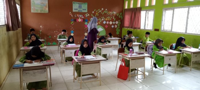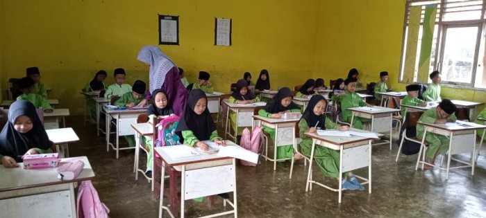 Selama ujian berlangsung, suasana kelas tampak serius namun tetap kondusif. Siswa mengerjakan soal dengan tekun tanpa saling menyontek. Mereka juga menunjukkan antusiasme tinggi dalam mengikuti ujian, serta selalu memperhatikan arahan dari dewan guru. Setelah selesai menjawab soal, siswa duduk dengan tenang sambil menunggu teman-temannya menyelesaikan ujian. Sambil menunggu, mereka memanfaatkan waktu dengan membaca buku pelajaran untuk meningkatkan kemampuan membaca. Selain itu, siswa kelas rendah MIN 1 Tebo aktif bertanya kepada guru jika ada soal atau tulisan yang kurang dipahami. Kegiatan membaca rutin juga dilakukan setiap hari untuk melatih kelancaran membaca, sehingga siswa lebih siap menghadapi ujian dan naik ke jenjang kelas berikutnya. Dewan guru dengan sabar membimbing siswa dalam menulis, membaca, dan berhitung agar mereka dapat mengerjakan soal dengan baik.