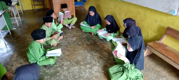 Para siswa tampak antusias belajar bersama, membaca buku, dan saling berdiskusi sambil bercanda ringan. Suasana kekompakan terlihat jelas di antara mereka, yang tidak hanya memperkuat kemampuan membaca, tetapi juga menumbuhkan semangat belajar kolektif. Kegiatan membaca bersama ini juga menjadi bagian dari persiapan siswa menghadapi ujian, sehingga mereka merasa lebih percaya diri dan siap menjawab soal-soal yang akan dihadapi. Setelah bel masuk berbunyi, para siswa langsung duduk rapi di kursi masing-masing, menunggu kehadiran guru pengawas ujian. Sikap disiplin dan kesiapan mereka dalam menghadapi ujian menjadi perhatian positif di lingkungan madrasah.