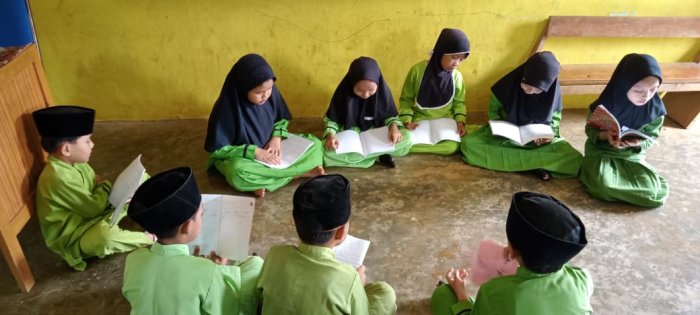Pada Jumat, 5 Desember 2025, siswa kelas rendah di Madrasah Ibtidaiyah Negeri (MIN) 1 Tebo menunjukkan semangat belajar yang tinggi. Mereka memanfaatkan waktu istirahat di dalam kelas untuk membaca buku pelajaran bersama teman-teman. Kegiatan ini dilakukan sebelum bel masuk berbunyi, menjelang pelaksanaan ujian sumatif akhir pada jam kedua.