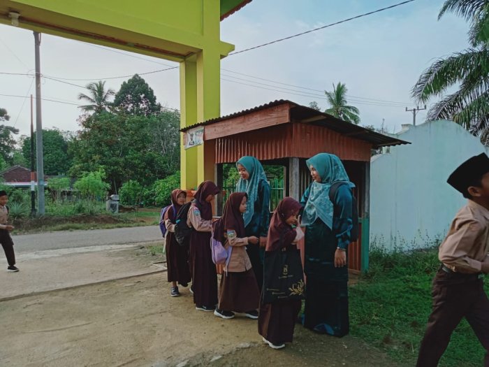 Pada Sabtu, 6 Desember 2025, dewan guru MIN 1 Tebo kembali menjalankan kegiatan rutin pagi berupa piket untuk menyambut kehadiran siswa di madrasah. Kegiatan ini tetap berlangsung meskipun sedang dilaksanakan ujian sumatif akhir semester ganjil. Para guru menunjukkan komitmen tinggi dalam menjalankan tugas piket setiap pagi sesuai jadwal yang telah ditetapkan. Setiap harinya, sebanyak tiga hingga empat guru bertugas di gerbang madrasah mulai pukul 06.20 WIB. Dewan guru menyambut siswa dengan ramah dan penuh semangat, menciptakan suasana positif di lingkungan madrasah. Pada pagi tersebut, guru yang bertugas adalah Ibu Nurhidayah, S.Pd.I, Ibu Rahmawani Maghfirah, S.Pd, Ibu Marlena, S.Pd.I, dan Ibu Fadliah Jumroh, S.Pd. Kehadiran para guru di gerbang madrasah disambut antusias oleh siswa yang datang tepat waktu.