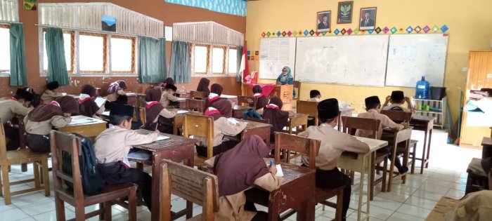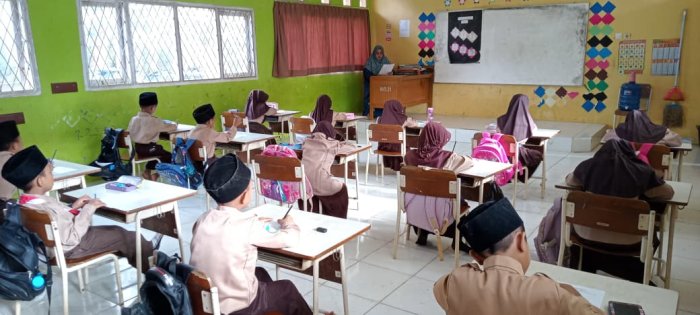 Seluruh siswa tampak serius dan fokus dalam mengerjakan soal. Mereka berusaha menjawab dengan rapi dan tidak saling mencontek. Suasana kelas pun tetap kondusif, meski penuh semangat dan antusiasme. Para siswa mengikuti arahan dewan guru dengan baik, menunjukkan sikap disiplin selama ujian berlangsung. Setelah selesai menjawab soal, siswa duduk dengan tenang sambil menunggu teman-teman lain menyelesaikan ujian. Sambil menunggu, mereka memanfaatkan waktu dengan membaca buku pelajaran, yang juga menjadi bagian dari rutinitas harian untuk meningkatkan kemampuan membaca. Jika ada soal atau tulisan yang kurang dipahami, siswa aktif bertanya kepada guru untuk mendapatkan penjelasan lebih lanjut.
