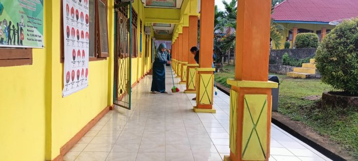 Pada Sabtu, 6 Desember 2025, keluarga besar Madrasah Ibtidaiyah Negeri (MIN) 1 Tebo kembali menunjukkan komitmen mereka dalam menjaga kebersihan lingkungan madrasah. Kegiatan ini merupakan bagian dari penerapan panca cinta lingkungan yang dilakukan secara rutin setiap hari oleh dewan guru setelah tiba di madrasah. Langkah ini diambil sebagai bentuk tanggung jawab dan kepedulian terhadap lingkungan serta fasilitas madrasah. Para guru tidak hanya membersihkan ruang kelas, tetapi juga fokus pada area teras dengan mengepel lantai bersama-sama. Teras madrasah menjadi perhatian khusus karena setiap hari digunakan oleh banyak orang sehingga membutuhkan perawatan ekstra agar tetap bersih dan rapi.