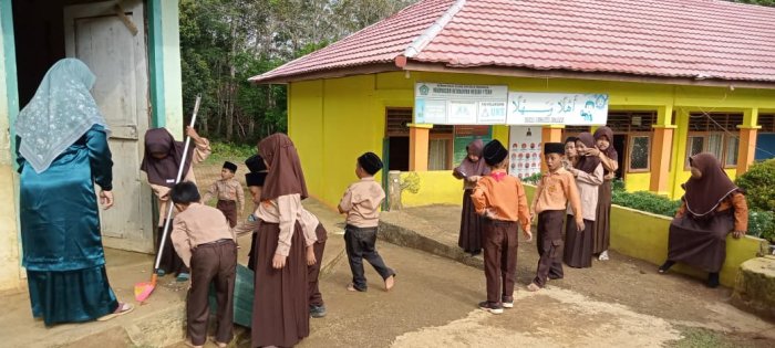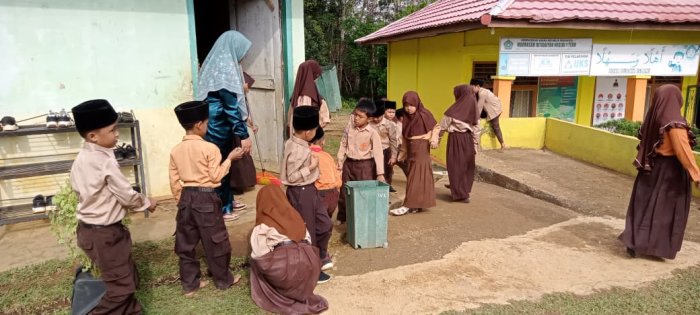 Seluruh siswa kelas 2 Madrasah Ibtidaiyah Negeri (MIN) 1 Tebo menunjukkan kekompakan dalam menjaga kebersihan lingkungan madrasah. Kegiatan membersihkan lingkungan ini menjadi kewajiban bagi seluruh warga MIN 1 Tebo dan rutin dilakukan untuk menciptakan suasana belajar yang nyaman dan sehat. Aksi bersih-bersih ini dilaksanakan setelah para siswa mengikuti pelaksanaan sumatif akhir semester pada hari keenam di lingkungan madrasah. Para siswa kelas 2 ini membersihkan lingkungan kelasnya dipandu langsung oleh wali kelas Ibu Ida Purwanti, S.Pd.I