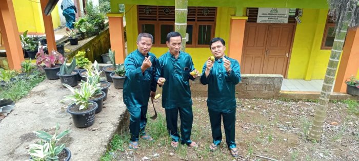 Selain itu, para guru yang juga merangkap sebagai wali kelas dan guru mata pelajaran rutin memantau langsung kondisi kebersihan aula dan area WC siswa. Setelah seluruh siswa pulang ke rumah masing-masing, guru bertugas menutup dan mengunci WC siswa untuk menjaga keamanan dan kebersihan fasilitas tersebut. Tidak hanya fokus pada kebersihan, para guru juga memperhatikan perawatan tanaman di sekitar madrasah. Mereka secara rutin memantau dan merawat berbagai jenis tanaman seperti pinang, kelapa, pisang, alpukat, dan matoa yang tumbuh di belakang madrasah. Selain tanaman buah, tanaman bunga juga dirawat agar lingkungan madrasah tetap asri dan nyaman.