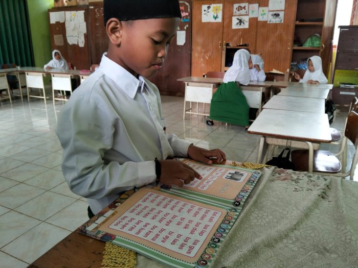 Kelas 1B memulai kegiatan membaca dengan antusias yang luar biasa. Para siswa tampak semangat dan antusias dalam mengikuti kegiatan membaca ini. dewan guru memberi kesempatan kepada seluruh siswa kelas 1B untuk melaksanakan kegiatan membaca secara bergantian. Siswa melaksanakan kegiatan membaca ini secara bergantian yang langsung di pandu oleh wali kelas. Ibu Nurhidayah, S.Pd.I memberikan pengarahan langsung dan melatih siswa untuk terus membaca dengan baik dan benar. Dengan penuh rasa sabar, wali kelas membimbing kegiatan membaca didalam kelas dengan sangat baik.