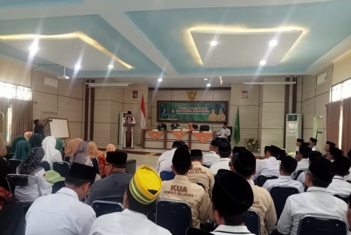 Pada Selasa, 16 Desember 2025 Kepala MIN 1 Tebo Bapak H. Ruslani, S.Pd., M.M menghadiri sebuah agenda penting yaitu kegiatan Training of Trainer (TOT) calon mu’alim (Guru/Pelatih) metode 30 menit bisa membaca Al-qur’an. Kegiatan ini dilaksanakan 09.00 WIB di aula kantor Kementerian Agama Kabupaten Tebo. Kegiatan ini hadiri langsung oleh Kepala Kantor Kemenag Tebo Bapak H. Julan, S.Ag., M.Pd.I dan seluruh kepala madrasah negeri baik Madrasah Ibtidaiyah, Madrasah Tsanawiyah dan Madrasah Aliyah serta Dharma Wanita persatuan Kabupaten Tebo. Kegiatan diadakan langsung oleh Dharma Wanita Persatuan (DWP) Provinsi Jambi yang sekaligus membuka kegiatan sosialisasi 30 menit bisa membaca Al-qur’an.
