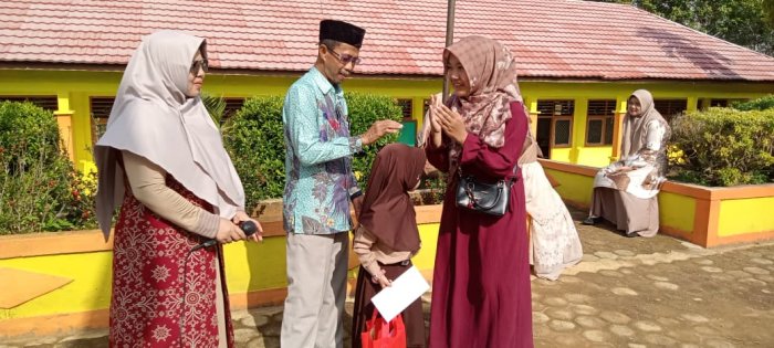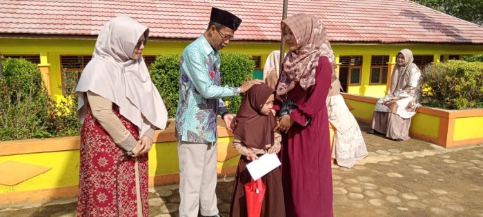 Pada Sabtu, 20 Desember 2025 Kepala MIN 1 Tebo Bapak H. Ruslani, S.Pd., M.M menyerahkan bingkisan berupa alat tulis dan bantuan uang tunai kepada salah satu siswa MIN 1 Tebo yang sudah tidak punya ayah ataupun ibu (Yatim Piatu). Bingkisan ini diberikan kepada siswa tersebut usai pembagian rapor yang dilaksanakan secara langsung di lapangan madrasah. Siswa yang menerima bingkisan tersebut adalah siswa kelas 1A atas nama Naura Putri Ramadhani. Bantuan ini berasal dari Dharma Wanita Persatuan (DWP) Kantor Kementerian Agama Kabupaten Tebo yang diterima secara langsung oleh Kepala MIN 1 Tebo Bapak H. Ruslani, S.Pd., M.M pada saat beliau mengikuti kegiatan Jalan Santai Kerukunan yang dilaksanakan di Kantor Kementerian Agama Kabupaten Tebo dalam rangka memperingati Hari Amal Bakti (HAB) yang ke 80.