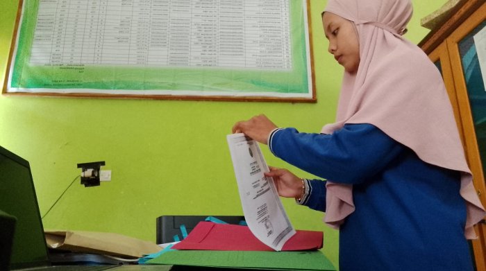 Pada Senin, 22 Desember 2025 Staf TU MIN 1 Tebo Ibu Falikhatus Saadah, S.Pd hadir di madrasah untuk menyiapkan berbagai hal terkait administrasi madrasah. Beliau hadir di madrasah karena merupakan PPPK yang belum genap satu tahun, sehingga wajib standby di madrasah. Terdapat 4 pegawai PPPK yang belum genap satu tahun di MIN 1 Tebo, yaitu 2 dewan guru dan 2 penata layanan operasional. Staf TU tersebut hadir di madrasah pada pukul 08.00 WIB, Staf TU mengerjakan beberapa yang ada di ruangan yaitu, menyusun dan mengecek kembali data PIP yang sebelumnya telah dikumpulkan oleh siswa, mengecek absen dewan guru serta membersihkan ruangan kerja agar telihat bersih dan rapi.