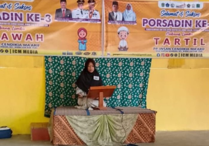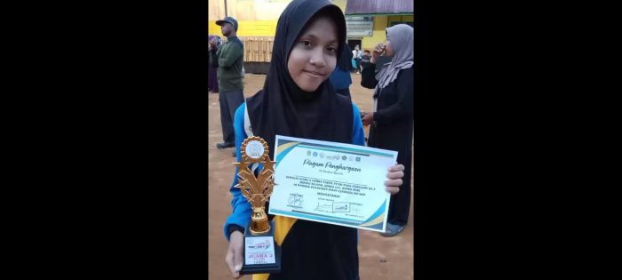 Dalam kegiatan tersebut siswa MIN 1 Tebo berhasil memenangkan juara dalam lomba tilawah yaitu Zahrotusilla memenangkan juara 2 lomba tilawah dan Latifatun Nur’Aini memenangkan juara 3 lomba tilawah. Tilawah merupakan seni membaca Al-Qur’an dengan baik, indah dan penuh penghayatan, dapat menggabungkan aturan tajwid dengan benar, nada yang merdu agar makna ayat yang dibaca tersampaikan dengan khusyuk. Aspek yang dinilai dalam lomba tilawah ini yaitu tartil, tajwid, maqamat (nada) dan juga penghayatan serta tafsir. Selain telah membawa nama baik TPA, para siswa juga telah mengharumkan nama baik madrasah dengan prestasi. Kepala MIN 1 Tebo Bapak H. Ruslani, S.Pd., M.M mengimbau kepada siswa MIN 1 Tebo agar selalu giat belajar agar dapat memperoleh prestasi yang dapat membanggakan madrasah maupun lingkungan masyarakat.