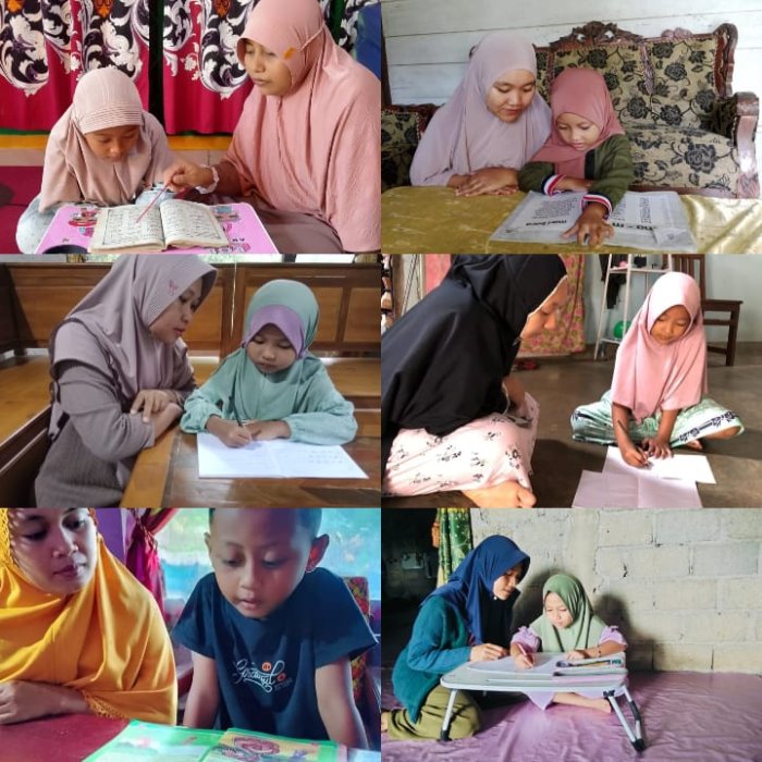 Aktivitas belajar yang dilakukan meliputi membaca, menulis, berhitung, mengerjakan soal-soal latihan, serta belajar membaca Iqro’ dengan baik dan benar. Meski dalam masa libur semester ganjil, para siswa tetap menunjukkan kesungguhan dalam belajar. Hal ini menandakan komitmen mereka untuk terus meningkatkan pengetahuan dan keterampilan sebagai bekal untuk masa depan. Kegiatan ini juga menjadi bukti nyata kolaborasi antara dewan guru dan orang tua dalam mencerdaskan siswa. Peran orang tua sangat penting dalam mendampingi anak belajar di rumah. Selain sebagai pendamping, orang tua juga berperan sebagai pembimbing dan fasilitator pembelajaran. Dengan keterlibatan aktif orang tua, tercipta suasana belajar yang aman dan nyaman di rumah. Orang tua juga memberikan motivasi, membantu mengatasi kesulitan belajar, serta membangun kemandirian dan ikatan emosional yang kuat dengan anak.