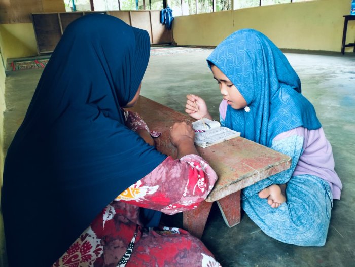 Para siswa terlihat tekun membaca Iqro’ bersama orang tua di rumah, menunjukkan antusiasme mereka dalam menuntut ilmu agama sebagai bekal masa depan. Selain belajar membaca Iqro’, para siswa juga diajarkan hafalan bacaan salat dan surah-surah pendek yang digunakan dalam ibadah sehari-hari. Orang tua tidak hanya membimbing anak-anak dalam membaca Al-Qur’an, tetapi juga menyampaikan kisah-kisah tentang Rasulullah SAW. Melalui kegiatan ini, siswa diharapkan dapat membentuk karakter disiplin, tanggung jawab, akhlak mulia, serta meningkatkan kualitas diri dan rasa syukur. Penguatan iman dan takwa kepada Allah SWT juga menjadi tujuan utama dari pembelajaran agama yang dilakukan secara konsisten di rumah.