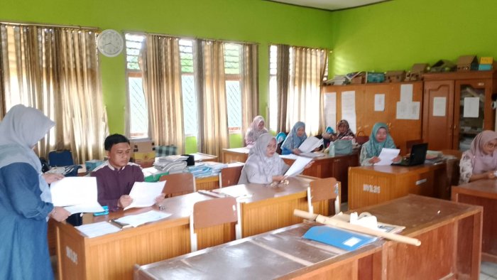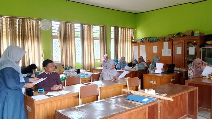 Selain dewan guru, staf Tata Usaha MIN 1 Tebo, yaitu Ibu Falikhatus Saadah, S.Pd dan Ibu Ainun Mahmuda, S.Pd, juga berperan penting dalam mendukung kelancaran administrasi. Mereka tidak hanya membantu penyusunan berkas, tetapi juga melayani siswa yang mengambil ijazah, menyusun dan memeriksa data Program Indonesia Pintar (PIP), mengecek absensi guru, membersihkan ruang kerja, serta menyiapkan dokumen pemberkasan guru ASN. Kehadiran dan peran aktif staf TU sangat membantu mempercepat proses administrasi di madrasah, sehingga seluruh pekerjaan dapat terselesaikan secara efisien. Sebelumnya, dokumen S35 telah ditandatangani langsung oleh Kepala MIN 1 Tebo, Bapak H. Ruslani, S.Pd., M.M. Hal ini memudahkan para guru karena pada hari tersebut mereka hanya perlu menyusun ulang berkas tersebut bersama dokumen lain yang telah selesai. Selain itu, seluruh berkas juga telah diunggah melalui aplikasi mini apps Kemenag sebagai bagian dari upaya digitalisasi administrasi di lingkungan madrasah. Digitalisasi ini diharapkan dapat meningkatkan efisiensi dan transparansi dalam pengelolaan dokumen administrasi.
