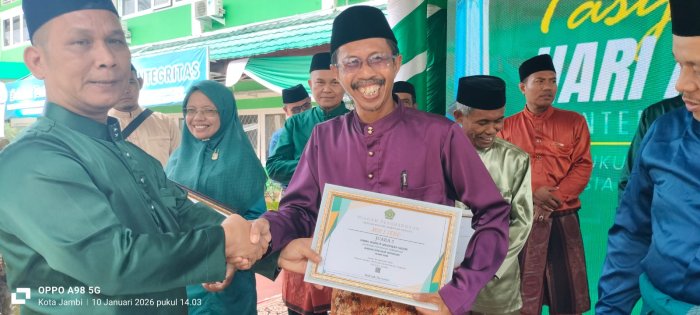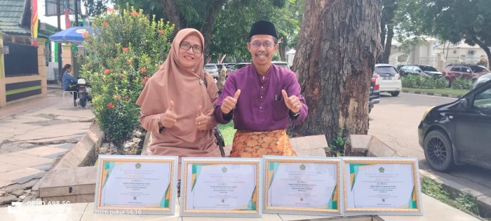 Pada kompetisi tersebut, MIN 1 Tebo berhasil meraih Juara 1 untuk kategori kreativitas terbaik dan juara 1 kategori pengunjung terbanyak. Selain itu, MIN 1 Tebo juga meraih Juara 2 untuk kategori postingan terbanyak dan Juara 3 untuk kategori inovasi media pembelajaran. Prestasi ini merupakan hasil kerja sama dan kekompakan seluruh keluarga besar MIN 1 Tebo yang terlibat aktif dalam pengelolaan website madrasah. Dukungan dari keluarga besar MIN 1 Tebo ini sangat penting dalam mengembangkan aplikasi website, sehingga MIN 1 Tebo mampu meraih penghargaan di berbagai kategori. Penghargaan atas prestasi ini diserahkan langsung kepada Kepala MIN 1 Tebo, Bapak H. Ruslani, S.Pd., M.M., pada puncak acara tasyakuran dalam rangka memperingati Hari Amal Bakti (HAB) ke-80 di Provinsi Jambi. Pada kesempatan tersebut, kepala madrasah juga berfoto bersama saat menerima penghargaan, didampingi oleh istri yang merupakan Ketua Satuan Kerja Darma Wanita Persatuan (DWP) MIN 1 Tebo. Momen ini menjadi bentuk apresiasi atas kerja keras seluruh pihak yang terlibat.