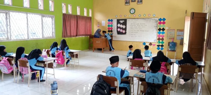 Para siswa tampak sungguh-sungguh melaksanakan kegiatan belajar agar ilmu yang mereka dapatkan akan bermanfaat bagi mereka. Sebelumnya mereka telah menyiapkan diri mereka masing-masing dengan melaksanakan pembelajaran agar pada semester genap ini mereka dapat kembali mengikuti pembelajaran dengan baik dan serius. Kefokusan terus ditunjukkan oleh siswa dalam menuntut ilmu sebagai bentuk tanggung jawab mereka sebagai seorang pelajar. Sementara itu, pembelajaran juga dilaksanakan pada siswa kelas rendah, yang sejak pagi telah duduk di kursinya masing-masing dan siap menuntut ilmu bersama dewan guru. Pada hari ini siswa kelas rendah mengikuti pembelajaran bersama wali kelas mereka masing-masing. Siswa kelas rendah tampak kembali melanjutkan pembelajaran pada semester genap ini. Semangat yang luar biasa ini ditunjukkan oleh siswa kelas rendah untuk kembali melaksanakan pembelajaran dengan sungguh-sungguh.