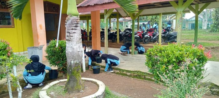 Para siswa juga membersihkan ruang kelas dengan menyapu, mengepel, dan mengelap meja serta kursi. Lingkungan yang bersih diharapkan dapat memberikan semangat lebih kepada siswa saat mengikuti pembelajaran. Selain itu, siswa laki-laki turut serta membersihkan area pagar madrasah hingga ke bagian belakang kelas. Kegiatan ini tidak hanya bertujuan menjaga kebersihan, tetapi juga mempererat kerja sama dan kekompakan antar siswa. Dengan kerja sama yang baik, proses membersihkan lingkungan madrasah dapat berlangsung lebih cepat dan efisien. Kebiasaan menjaga kebersihan ini juga terlihat dari kondisi kelas yang selalu bersih setiap harinya.