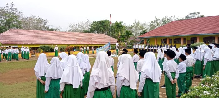 Bel tanda masuk berbunyi pada pukul 07.10 WIB, menandakan seluruh siswa dan guru segera berkumpul di lapangan. Para siswa dari kelas 1 hingga kelas 6 berbaris rapi di bawah bimbingan wali kelas masing-masing. Dengan penuh semangat, mereka mengikuti rangkaian upacara yang dimulai tepat pukul 07.15 WIB. Upacara bendera kali ini dipimpin oleh Bapak Aswadi, S.Pd.I, selaku pembina upacara. Dalam amanatnya, beliau mengucapkan terima kasih kepada petugas upacara dari kelas 5A yang telah menjalankan tugas dengan baik. Namun, beliau juga mengingatkan agar para siswa terus belajar dan meningkatkan kemampuan agar pelaksanaan upacara ke depan semakin baik.