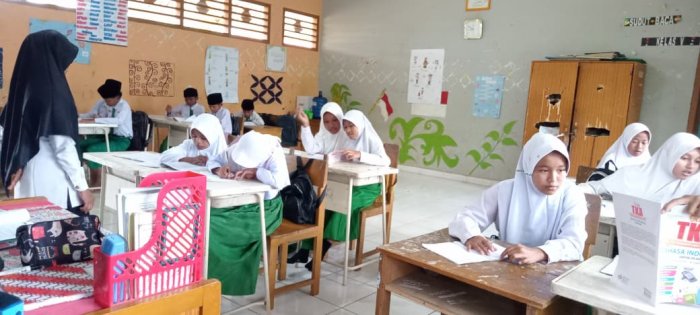 Pada Senin, 9 Februari 2026, siswa kelas VI MIN 1 Tebo menunjukkan semangat belajar yang tinggi dalam menghadapi Tes Kemampuan Akademik (TKA). Kegiatan ini diikuti oleh siswa kelas VI A dan VI B yang melaksanakan pembelajaran bersama wali kelas masing-masing di ruang kelas setelah mengikuti upacara bendera di lapangan madrasah. Pembelajaran diawali dengan doa bersama, bertujuan agar proses belajar berjalan lancar dan ilmu yang disampaikan guru dapat diterima dengan baik oleh para siswa. Siswa kelas VI A belajar bersama Ibu Nurul Aeni, S.Pd.I dengan fokus pada buku TKA mata pelajaran Bahasa Indonesia. Mereka membahas soal-soal latihan secara aktif dan penuh semangat. Sementara itu, siswa kelas VI B bersama Bapak Suyono, S.Pd.I, mempelajari materi Matematika dari buku TKA, juga dengan antusias membahas materi dan soal-soal latihan.