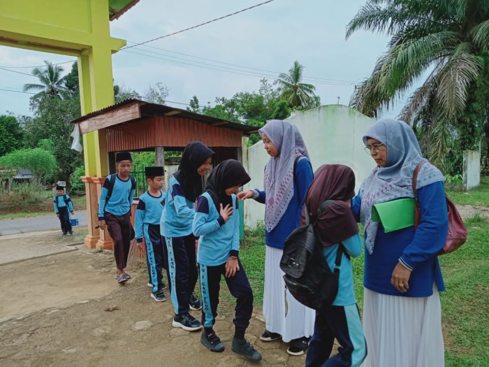 Kegiatan piket pagi dimulai sejak pukul 06.20 WIB. Para guru menyambut siswa dengan ramah, sementara para siswa berbaris rapi dan bersalaman dengan para guru sebelum memasuki lingkungan madrasah. Tradisi bersalaman ini telah menjadi kebiasaan yang dijaga setiap hari di MIN 1 Tebo, sebagai salah satu upaya membangun kedekatan antara siswa dan guru serta menanamkan nilai sopan santun di lingkungan madrasah. Selain menyambut siswa, para guru juga mengingatkan siswa untuk selalu menjaga kebersihan lingkungan madrasah, baik di sekitar gerbang madrasah maupun di dalam kelas. Kepala MIN 1 Tebo, Bapak H. Ruslani, S.Pd., M.M, mengimbau seluruh dewan guru agar terus melaksanakan pembiasaan piket dengan penuh semangat. Beliau berharap kegiatan ini dapat memotivasi siswa untuk lebih giat belajar dan menuntut ilmu bersama para guru.