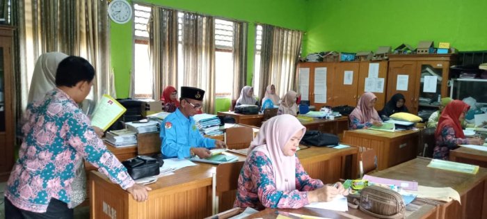 Selain itu, dokumen seperti S25, S35, dan S26 dari Aplikasi Emis GTK belum dapat diakses karena sistem masih dalam perbaikan. Oleh karena itu, untuk pencairan bulan Januari, hanya berkas yang tersedia yang dikumpulkan terlebih dahulu. Seluruh dewan guru menunjukkan semangat tinggi dalam menyelesaikan pemberkasan agar proses pencairan TPG dapat segera dilakukan. Kerja sama antara guru dan staf TU menjadi kunci kelancaran kegiatan ini. Pada hari yang sama, berkas-berkas tersebut dijadwalkan akan dibawa dan diserahkan ke kantor Kemenag Tebo oleh salah satu dewan guru, Bapak Sri Budiyono, S.Pd.I.