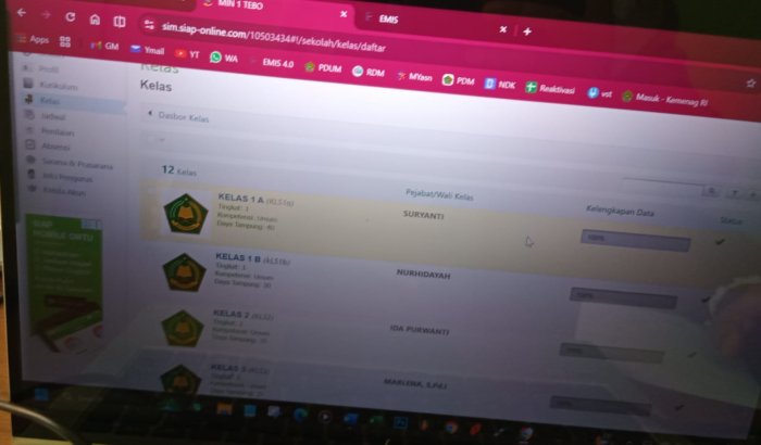 Operator juga menyesuaikan jadwal mata pelajaran pada setiap rombongan belajar (rombel) melalui fitur jadwal mengajar yang tersedia di aplikasi Emis. Fitur ini memudahkan dalam merekam aktivitas mengajar guru secara sistematis. Selain mengisi jadwal, operator juga mengelola data kurikulum, mencatat jam tugas mengajar (JTM) guru, dan memvalidasi data untuk keperluan administrasi seperti sertifikasi. Data yang telah diverifikasi ini menjadi dasar dalam penerbitan surat keterangan beban kerja serta kelayakan tunjangan guru. Dengan kerja keras operator, seluruh guru ASN MIN 1 Tebo pada hari ini telah dinyatakan linier sesuai ketentuan yang berlaku.