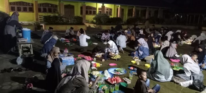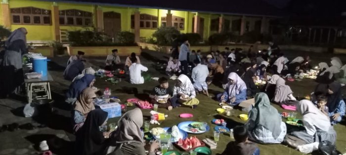 Keluarga besar Madrasah Ibtidaiyah Negeri (MIN) 1 Tebo menggelar acara buka puasa bersama di halaman madrasah pada Selasa, 10 Maret 2026. Acara ini dihadiri oleh Kepala MIN 1 Tebo, Bapak H. Ruslani, S.Pd., M.M, beserta keluarga, seluruh dewan guru, staf madrasah, komite madrasah, serta siswa kelas 4 hingga kelas 6. Tradisi buka puasa bersama ini telah menjadi agenda rutin tahunan yang selalu dinantikan oleh seluruh warga madrasah. Persiapan acara dimulai sejak sore hari sekitar pukul 17.30 WIB. Dewan guru dan staf madrasah bekerja sama menyiapkan tempat dengan melentangkan tikar di halaman serta menyusun hidangan berbuka. Makanan dan minuman telah dipersiapkan agar seluruh peserta dapat menikmati hidangan bersama saat waktu berbuka tiba. Suasana kebersamaan sangat terasa, terlihat dari para siswa yang duduk berdekatan, saling bercanda, dan berbagi cerita sambil menunggu waktu berbuka.