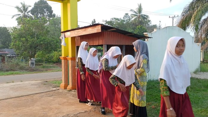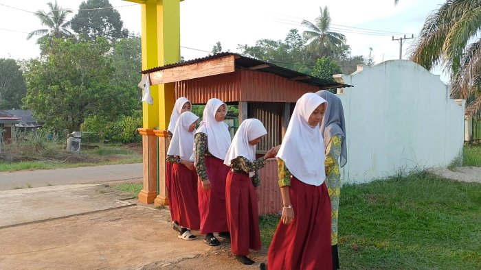 Kegiatan piket pagi dimulai pukul 06.30 WIB. Guru-guru yang bertugas menyambut siswa dengan senyum dan sapaan hangat. Para siswa berbaris rapi, kemudian bersalaman dengan guru sebelum memasuki lingkungan madrasah. Tradisi bersalaman ini telah menjadi kebiasaan yang dijaga setiap hari di MIN 1 Tebo, sebagai bagian dari upaya menanamkan nilai-nilai sopan santun dan kedekatan emosional antara guru dan siswa. Momentum Ramadan turut menambah semangat seluruh warga madrasah dalam menjalankan aktivitas. Selain menyambut siswa, para guru juga mengingatkan pentingnya menjaga kebersihan lingkungan, baik di sekitar gerbang maupun di dalam kelas. Hal ini menjadi bagian dari pembiasaan positif yang ditanamkan kepada siswa agar mereka peduli terhadap lingkungan sekitar.