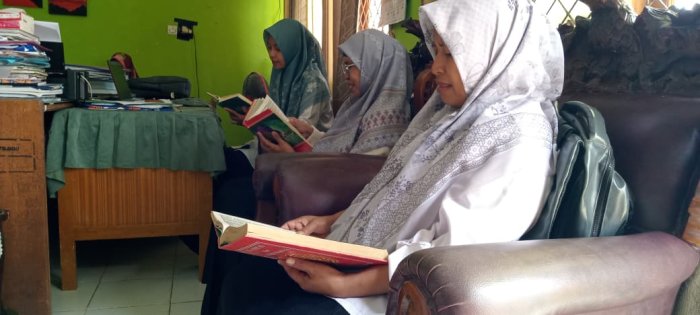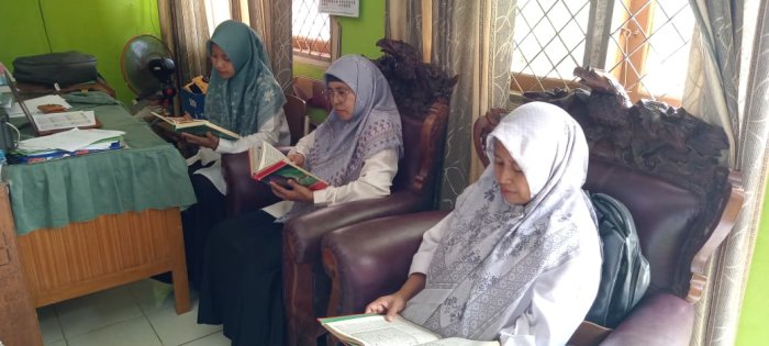 Para guru Madrasah Ibtidaiyah Negeri (MIN) 1 Tebo mengadakan kegiatan tadarus Al-Qur'an bersama di lingkungan madrasah menjelang masa libur madrasah. Kegiatan ini merupakan bentuk komitmen para guru dalam menanamkan dan memperkuat nilai-nilai keagamaan di lingkungan pendidikan. Tadarus Al-Qur'an diikuti oleh sejumlah guru, terutama dewan guru yang tidak memiliki jadwal mengajar pada saat itu. Pelaksanaan tadarus dilakukan sebelum kegiatan serupa bersama siswa dimulai. Dengan demikian, para guru dapat lebih siap dalam membimbing dan memandu tadarus siswa nantinya. Setiap guru membawa Al-Qur'an masing-masing dan membaca secara mandiri, sehingga tercipta suasana religius yang kental di lingkungan madrasah. Kegiatan ini juga menjadi ajang untuk mempererat silaturahmi antarguru dan memperkuat ikatan kebersamaan di antara mereka.