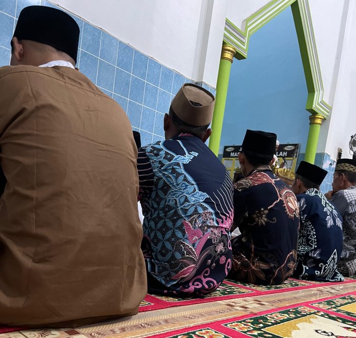 Pada pagi itu, para siswa MIN 1 Tebo bersama dewan guru dan masyarakat sekitar berkumpul di masjid lingkungan sekolah untuk melaksanakan salat Idulfitri. Para dewan guru sudah hadir sejak pukul 06.30 WIB dan duduk dengan tertib sesuai barisan yang telah diatur sebelumnya. Kehadiran dewan guru mencerminkan semangat dan rasa kebersamaan dalam menyambut hari kemenangan ini. Dewan guru MIN 1 Tebo mengikuti seluruh rangkaian sholat Idulfitri dengan khidmat, mulai dari takbir, pelaksanaan salat, hingga mendengarkan khutbah. Masyarakat sekitar juga turut memadati masjid, sehingga suasana Idulfitri terasa semakin hangat dan penuh kekeluargaan. Kegiatan ini tidak hanya menjadi sarana ibadah, tetapi juga mempererat hubungan antara siswa, guru, dan masyarakat sekitar.