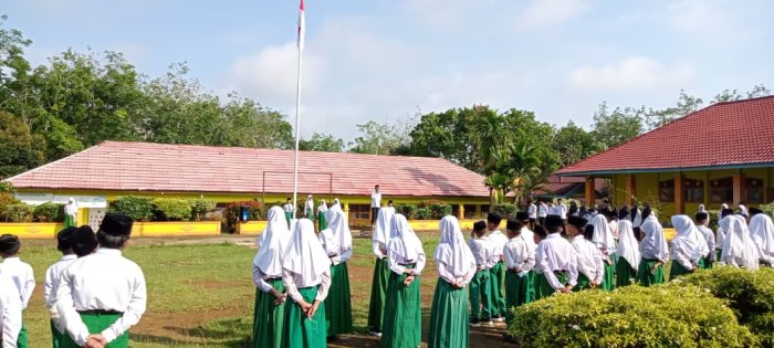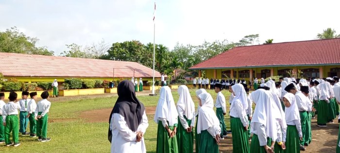 Setelah seluruh keluarga besar MIN 1 Tebo hadir tepat waktu, bel tanda berkumpul dibunyikan. Seluruh keluarga besar MIN 1 Tebo kemudian mengikuti upacara bendera yang rutin dilaksanakan setiap hari Senin. Guru-guru mengatur barisan siswa di lapangan upacara dan menunjuk beberapa siswa kelas 6A dan 6B sebagai petugas upacara. Sebelum upacara dimulai, para petugas sempat melakukan latihan singkat untuk memastikan pelaksanaan berjalan lancar dan tertib. Upacara bendera berlangsung dengan khidmat dan diikuti oleh seluruh siswa serta guru. Kepala MIN 1 Tebo, Bapak H. Ruslani, S.Pd., M.M., bertindak secara langsung sebagai pembina upacara. Dalam amanatnya, beliau menekankan pentingnya kesiapan siswa untuk kembali belajar setelah libur, serta meminta wali kelas memastikan kehadiran siswa tanpa tambahan libur. Kepala madrasah juga memberikan apresiasi kepada petugas upacara, khususnya petugas pengerek bendera, dan mengingatkan agar terus berlatih untuk meningkatkan kualitas pelaksanaan upacara.