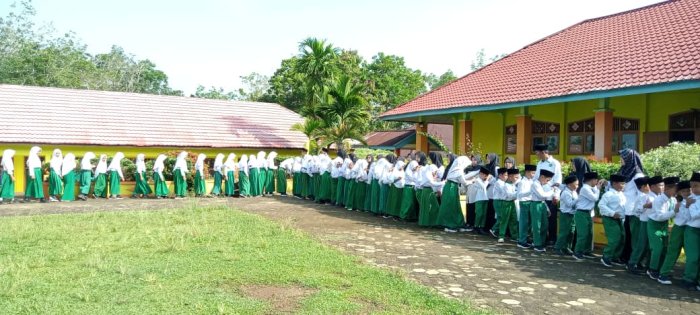 Pada Senin, 30 Maret 2026, seluruh keluarga besar Madrasah Ibtidaiyah Negeri (MIN) 1 Tebo kembali memulai aktivitas di lingkungan madrasah setelah libur Idulfitri 1447 H. Kegiatan hari pertama ini diawali dengan upacara bendera yang diikuti dengan antusias oleh para siswa dan dewan guru. Para guru yang bertugas melaksanakan piket menyambut kehadiran siswa dengan hangat, menciptakan suasana penuh keakraban usai pelaksanaan lebaran berlangsung. Setelah upacara bendera selesai, dewan guru mengumumkan bahwa seluruh siswa diminta tetap berkumpul di lapangan untuk melaksanakan kegiatan halalbihalal. Guru-guru mengatur barisan siswa dengan rapi agar pelaksanaan halalbihalal berjalan tertib. Kegiatan ini dimulai dari siswa kelas 1, kemudian dilanjutkan oleh kelas-kelas berikutnya sesuai urutan barisan.