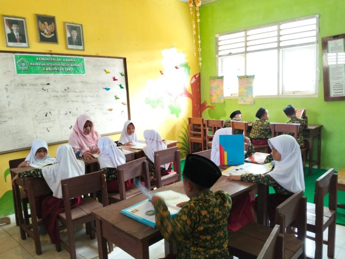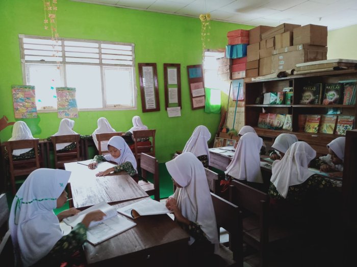 Dalam hal ini, penjaga perpustakaan juga memastikan ruangan tetap rapi agar suasana membaca menjadi nyaman dan kondusif bagi para siswa. Kegiatan literasi membaca ini tidak hanya dilakukan pada jam pelajaran, tetapi juga saat jam istirahat. Banyak siswa yang memanfaatkan waktu istirahat untuk mengunjungi perpustakaan dan membaca berbagai jenis buku, mulai dari buku pelajaran hingga cerita rakyat. Suasana perpustakaan menjadi lebih hidup karena siswa dapat membaca sambil bercengkerama dengan teman-teman mereka. Menurut Kepala MIN 1 Tebo, Bapak H. Ruslani, S.Pd., M.M, perpustakaan madrasah diharapkan dapat menjadi sumber ilmu pengetahuan bagi siswa di luar pembelajaran formal di kelas. Beliau juga mengimbau agar siswa selalu menjaga kondisi buku agar tetap layak digunakan dan dapat dimanfaatkan oleh generasi berikutnya.