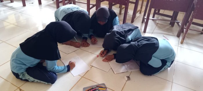 Selain itu, aktivitas menggambar juga melatih motorik halus, memacu imajinasi, meningkatkan fokus, dan membangun rasa percaya diri melalui hasil karya yang unik. Kegiatan ini juga menjadi media komunikasi visual yang aman bagi anak-anak. Selama proses menggambar, para siswa diperbolehkan memilih tempat yang nyaman, baik di lantai maupun di meja, namun tetap dalam pengawasan dewan guru. Mereka berkumpul membentuk lingkaran di lantai dan mulai menggambar sesuai dengan ekspresi dan imajinasi masing-masing. Sebagian besar siswa memilih objek hewan, seperti kupu-kupu, sementara yang lain menggambar tumbuhan dengan bentuk yang menarik. Setelah selesai, gambar-gambar tersebut akan diberi warna untuk menambah daya tarik visual.