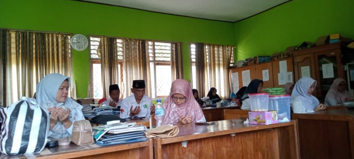 Kegiatan syukuran ini dibuka secara langsung oleh Kepala MIN 1 Tebo, Bapak H. Ruslani, S.Pd., M.M. Dalam sambutannya, beliau menyampaikan rasa syukur dan memberikan ucapan selamat kepada para guru yang telah lulus sertifikasi. Beliau juga menekankan pentingnya profesionalisme dan semangat dalam mendidik siswa, serta berharap para guru terus meningkatkan kualitas pendidikan di madrasah. Acara syukuran ini diawali dengan sambutan dari kepala madrasah, dilanjutkan dengan pembacaan doa yang dipimpin oleh Bapak Sri Budiyono, S.Pd.I, dan diakhiri dengan makan bersama seluruh dewan guru dan staf. Suasana penuh kehangatan dan kebersamaan terasa selama acara berlangsung, menandakan eratnya hubungan antar anggota keluarga besar MIN 1 Tebo.