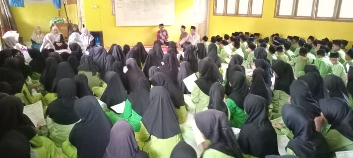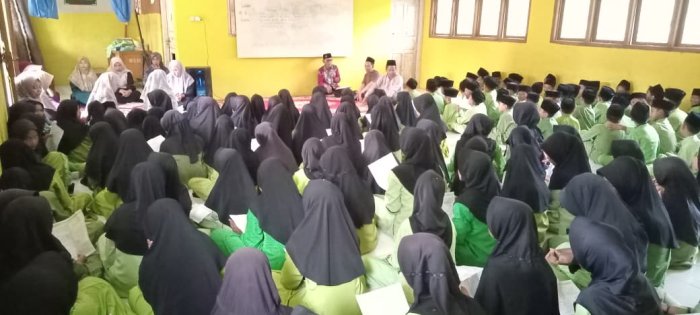 Sebelum kegiatan dimulai, dewan guru mengatur posisi duduk siswa agar pelaksanaan berjalan tertib dan rapi. Guru-guru juga membagikan kertas berisi bacaan istighosah sebagai panduan, sehingga siswa dapat membaca dengan benar dan diharapkan mampu menghafalnya. Seluruh staf madrasah turut serta untuk memastikan siswa mengikuti kegiatan dengan serius dan penuh perhatian. Selama kegiatan berlangsung, para siswa membaca dan menghafal istighosah secara bersama-sama. Kekompakan dan semangat siswa terlihat jelas, menandakan keseriusan mereka dalam menjalankan pembiasaan keagamaan di lingkungan madrasah. Kegiatan ini bertujuan agar seluruh warga MIN 1 Tebo mendapatkan keberkahan dan keridaan dari Allah SWT. Kepala MIN 1 Tebo, Bapak H. Ruslani, S.Pd., M.M, mengimbau seluruh siswa untuk mengikuti pembiasaan dengan baik dan penuh semangat. Beliau menekankan pentingnya keseriusan dalam menjalankan kegiatan keagamaan agar siswa terbiasa menerapkannya dalam kehidupan sehari-hari.